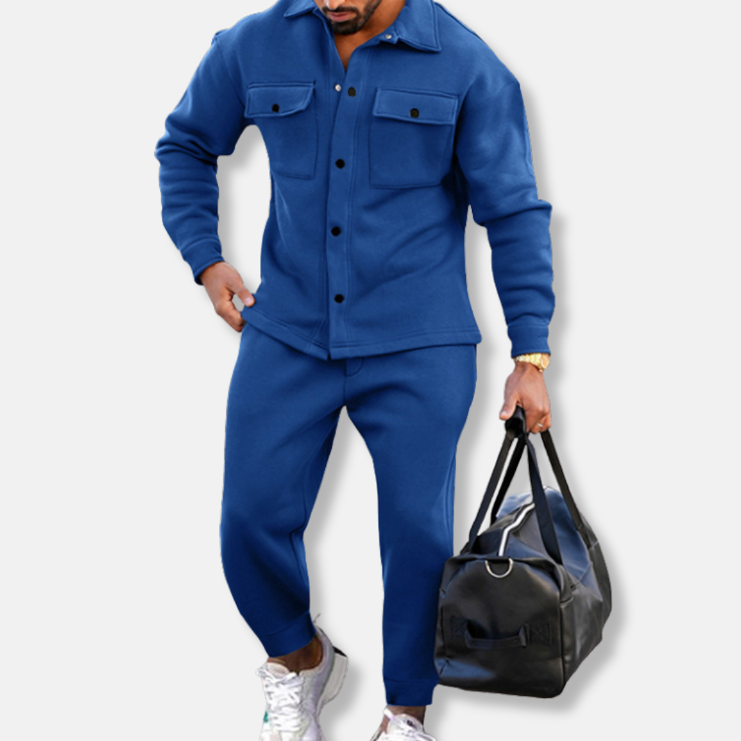 Men’s Two-Piece Suit – Relaxed Fit Jacket with Utility Pockets – Tapered Trousers