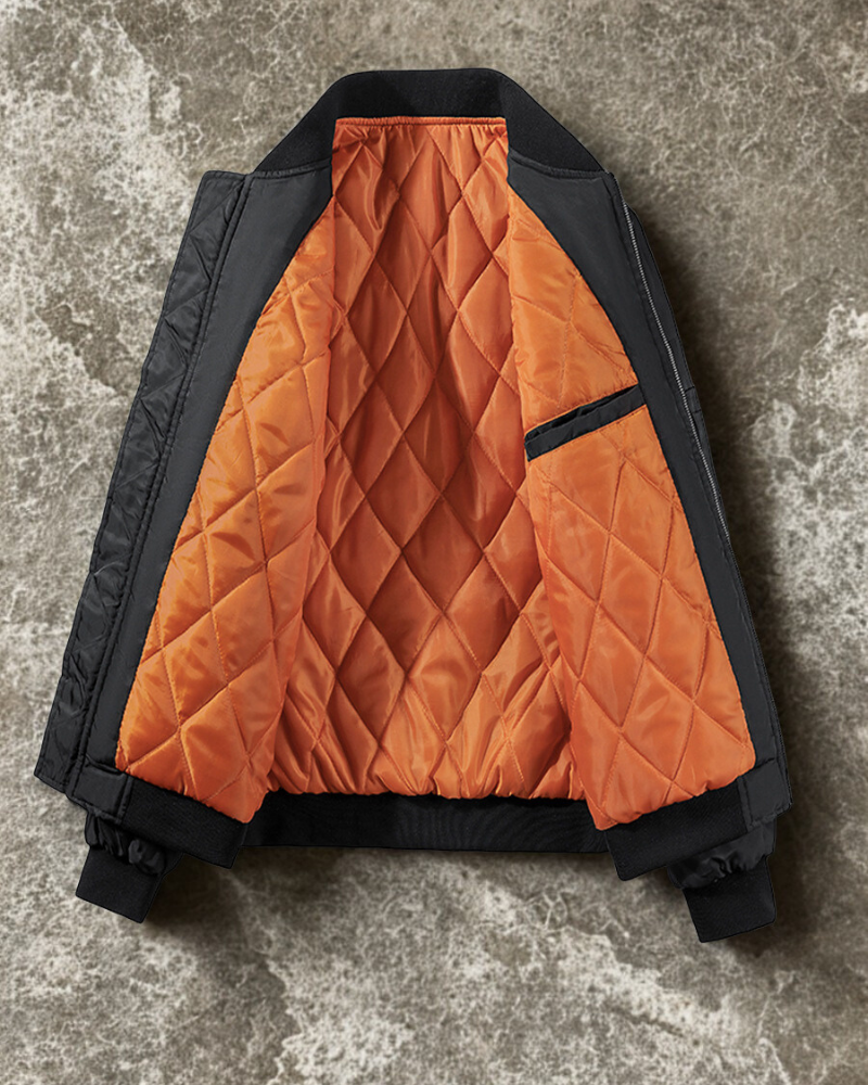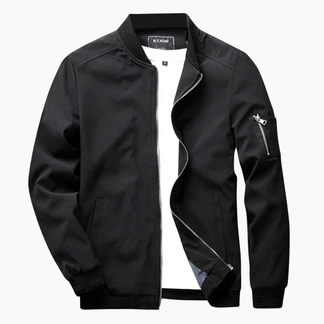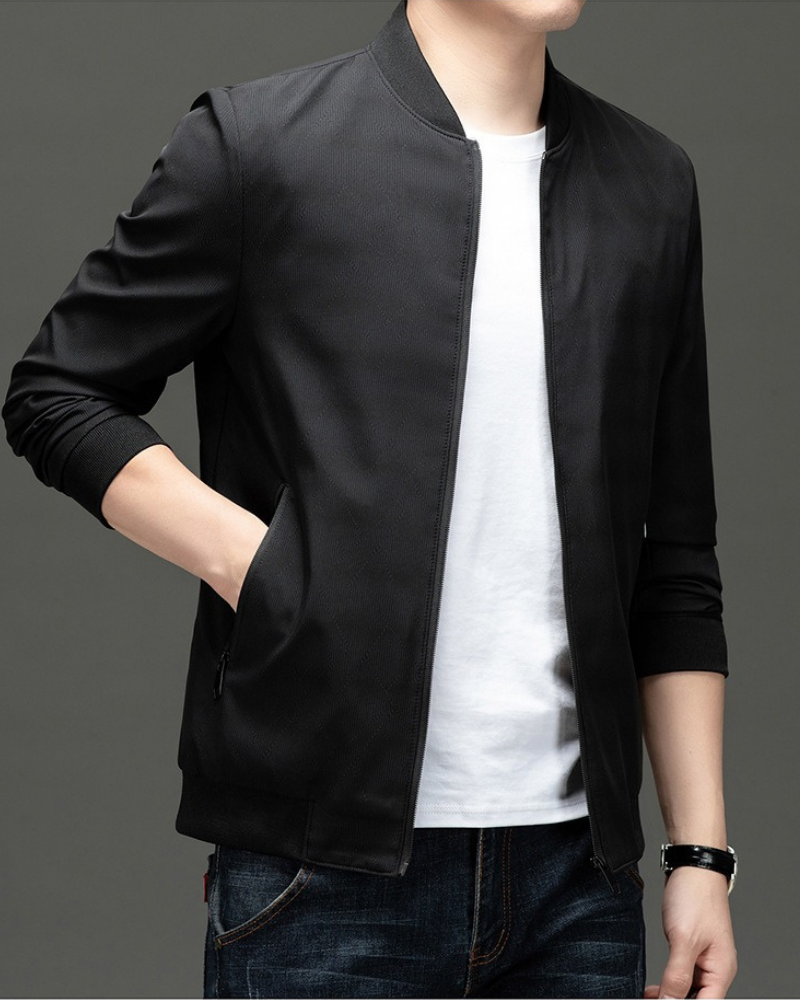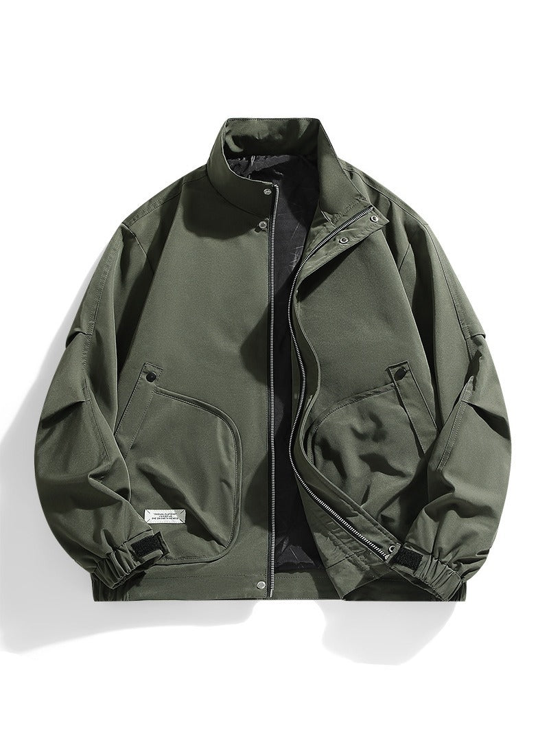 Men’s Bomber Jacket – Windproof – Stand-up Collar – Zipper Pockets – Elastic Trim