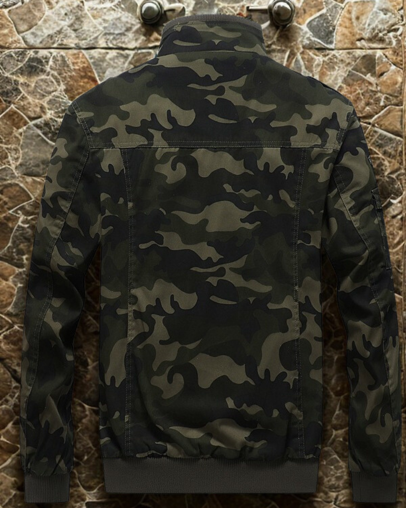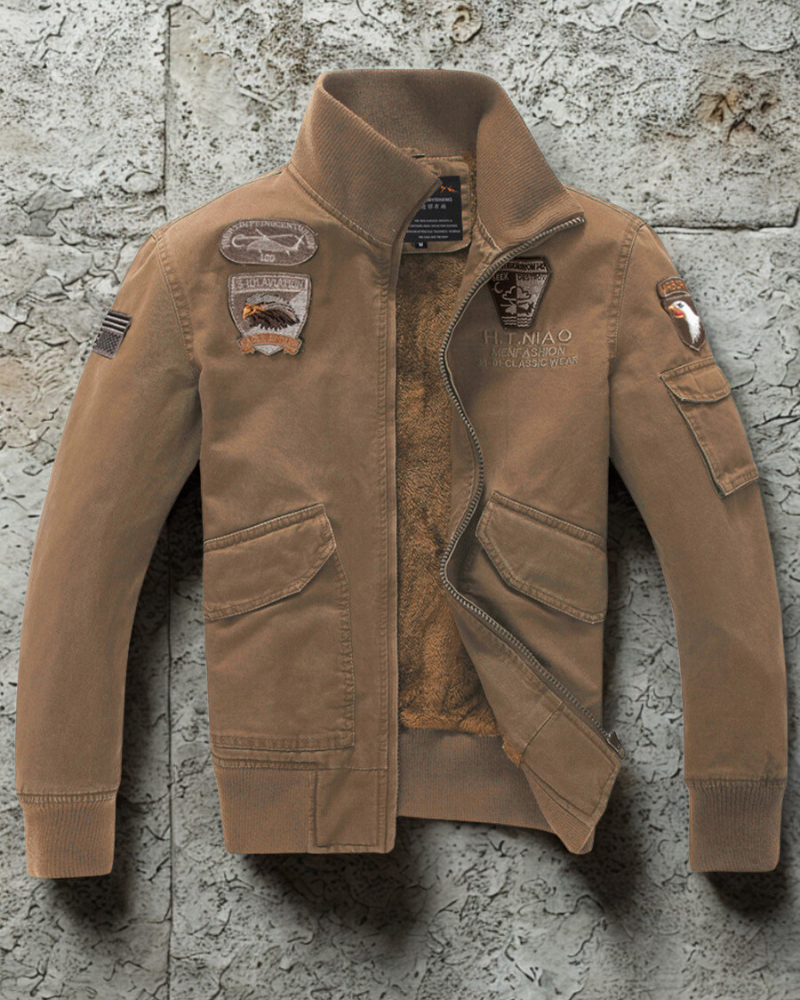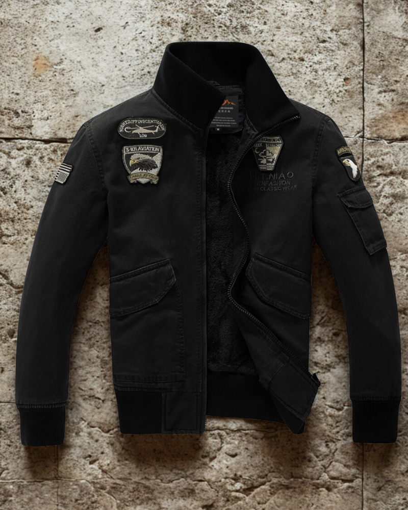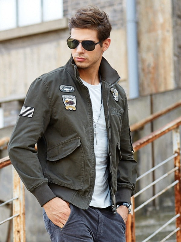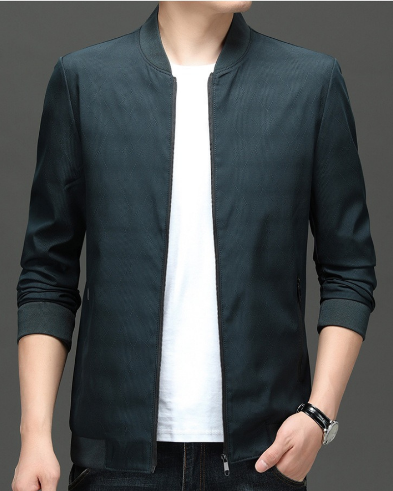 Men’s Bomber Jacket – Windproof – Stand-up Collar – Zipper Pockets – Elastic Trim