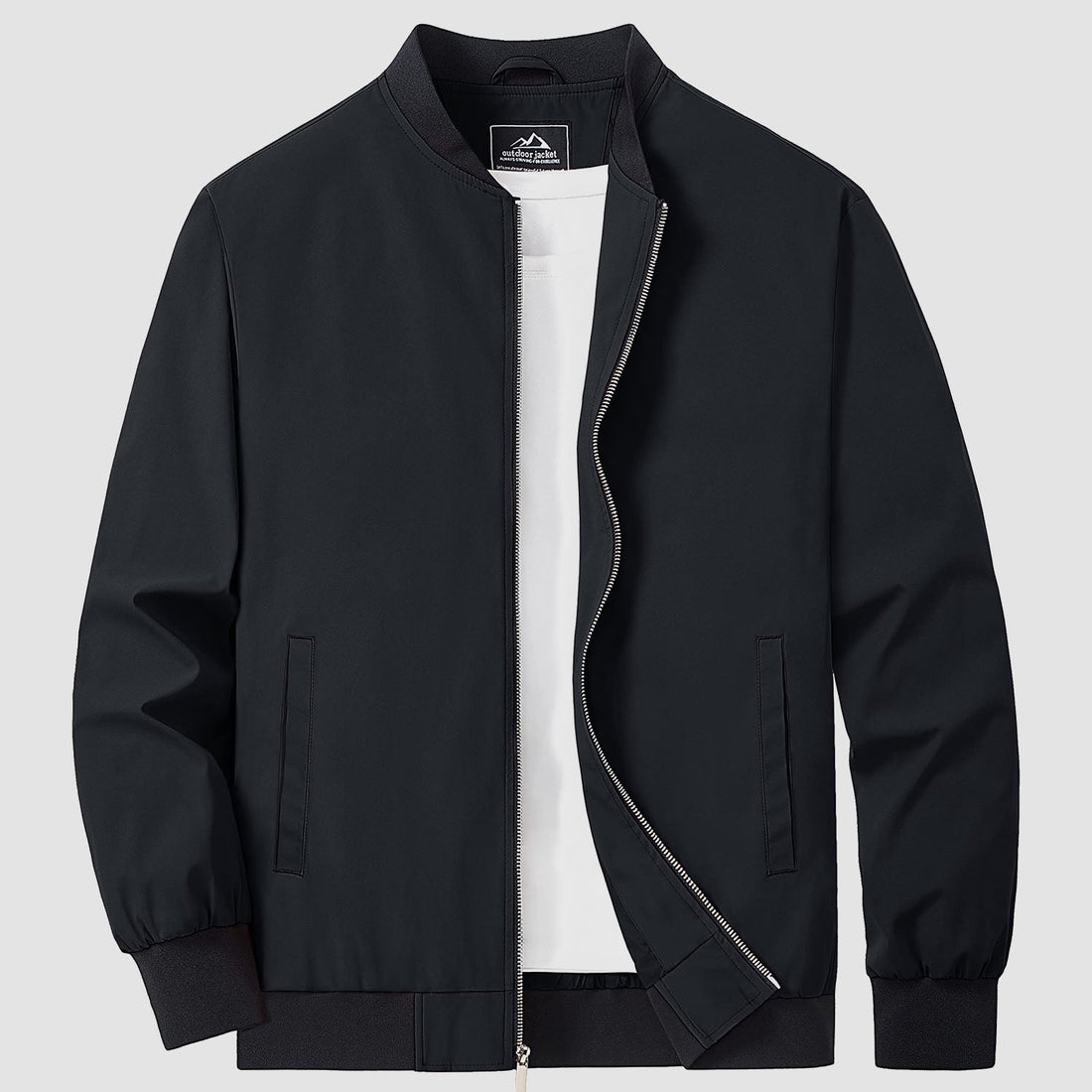 Theodore Relaxed Fit Bomber Jacket | Ribbed Collar Zip Front Jacket