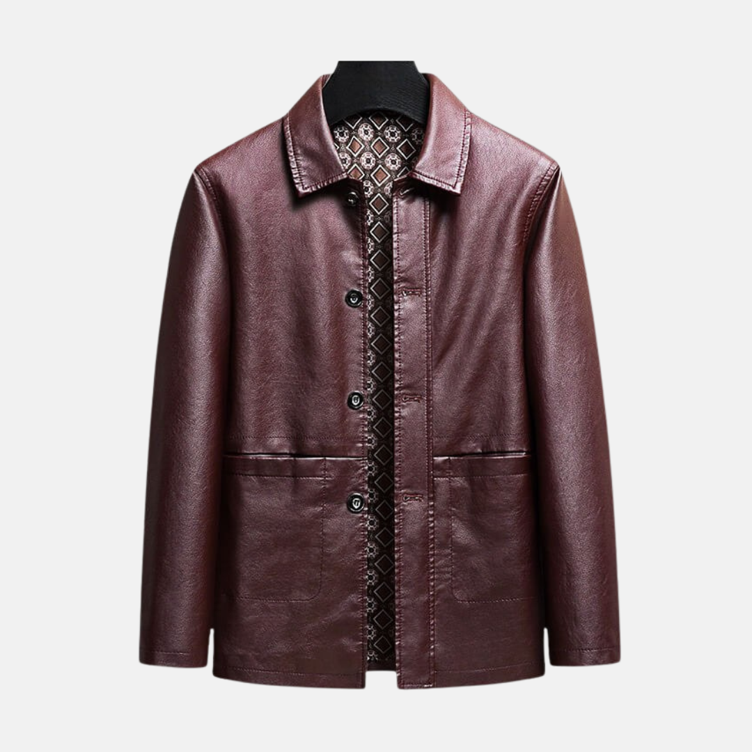 Men’s Jacket - Faux Leather - Single-Breasted - Point Collar - Hip Length