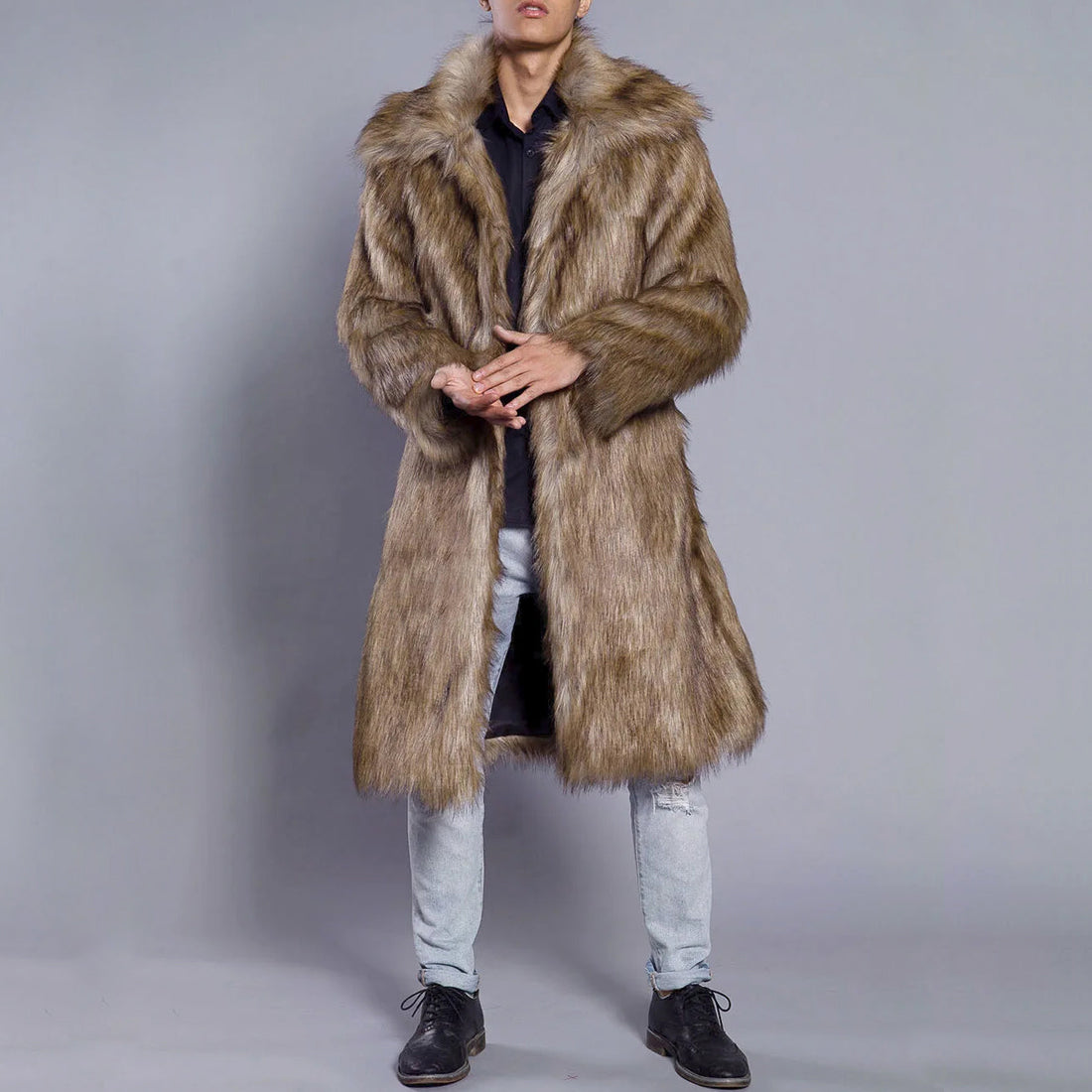 Men’s Fur Coat – Faux Fur – Oversized Fit – Full Length – Wide Lapel Statement Style