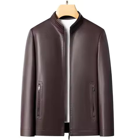 Men’s Leather Jacket – Slim Fit – Stand-Up Collar – Minimalist Zip Closure