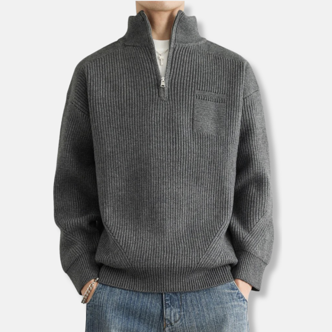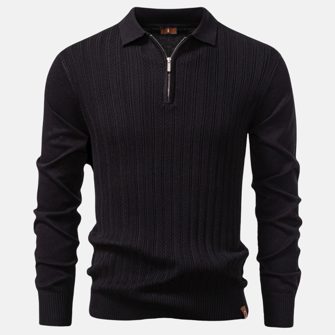 Men’s Sweatshirt - Knitted - Polo Collar - Half-Zip - Regular Slim Fit