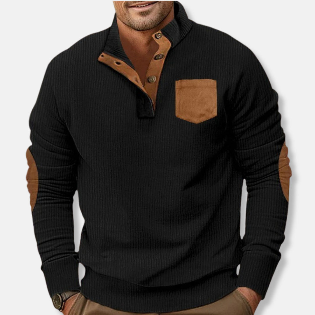 Men’s Sweatshirt - Cotton Blend - Stand Collar - Contrast Patch Pockets