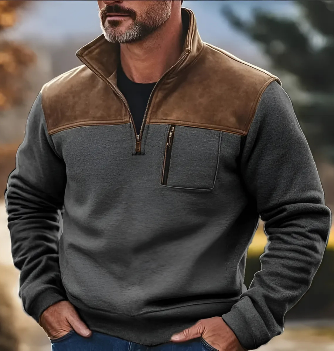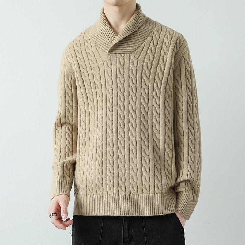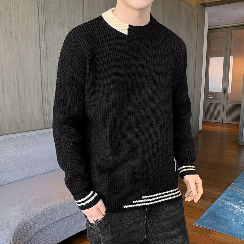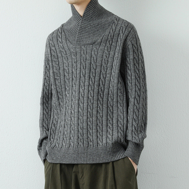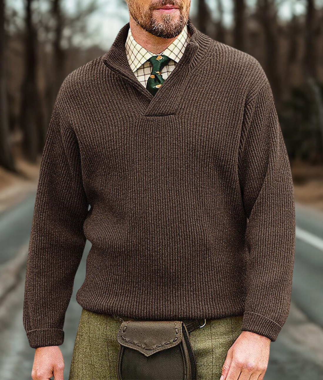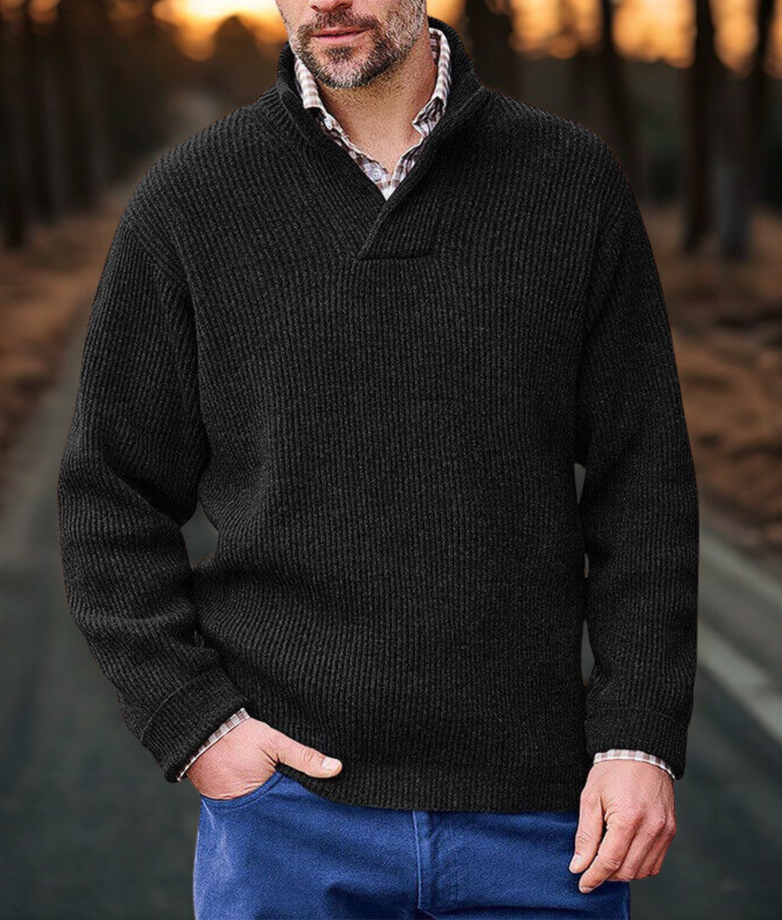 Men’s Sweater - Ribbed Knit - Loose Fit - Stand Collar