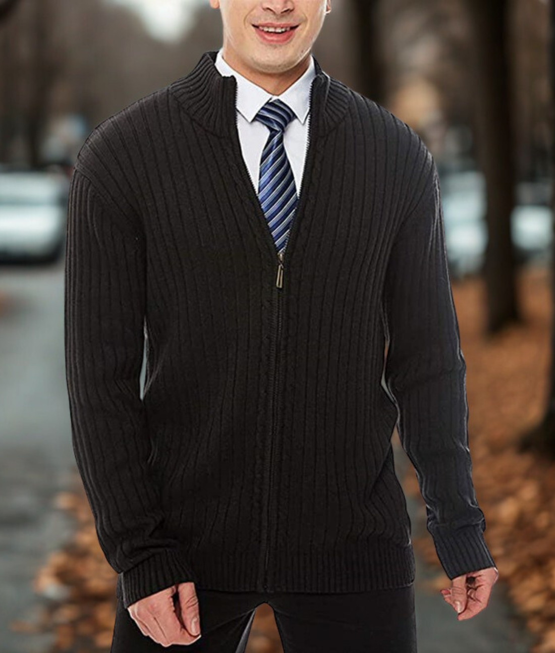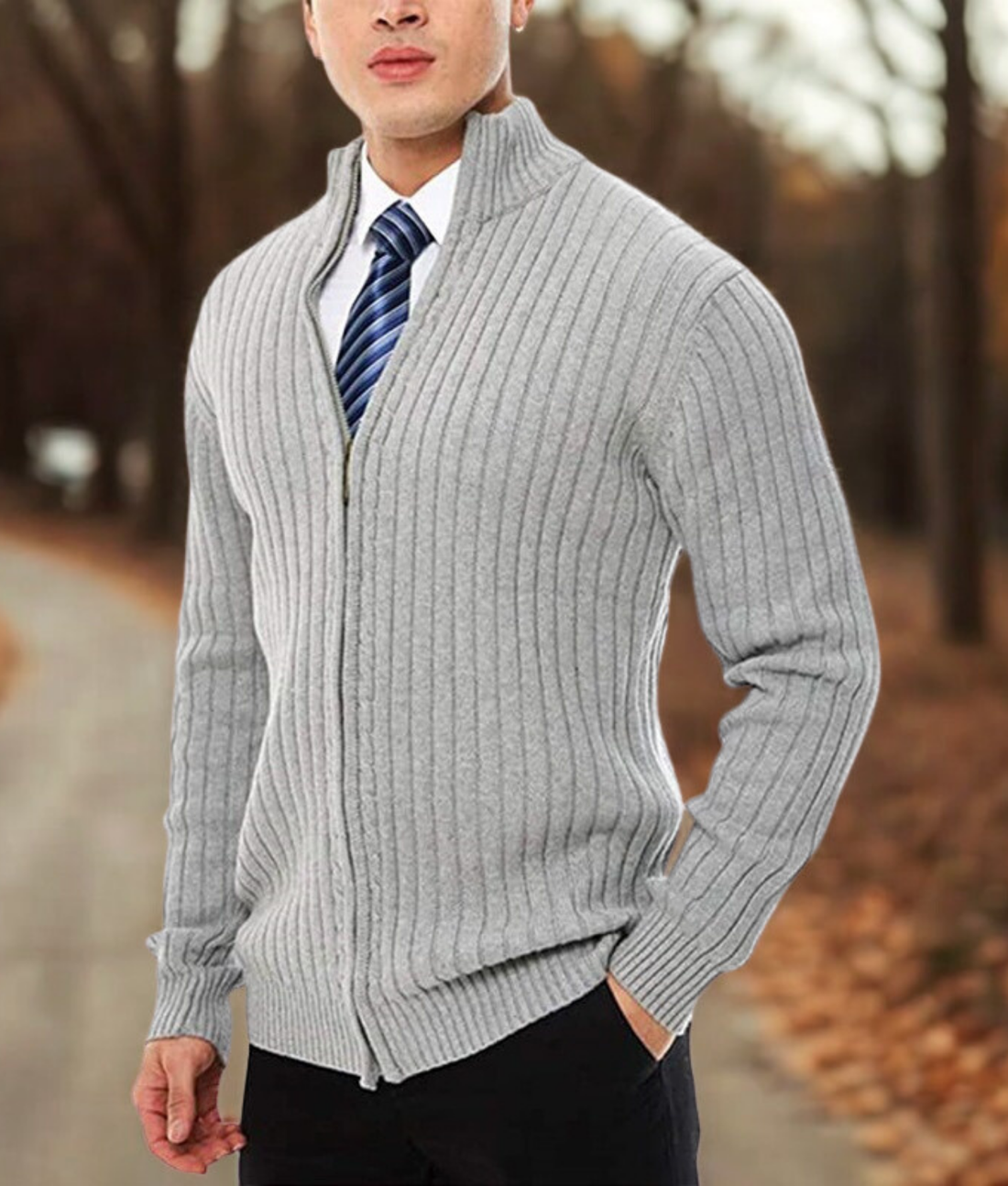 Noah Ribbed Cardigan Sweater | Stand Collar Zip Front Sweater
