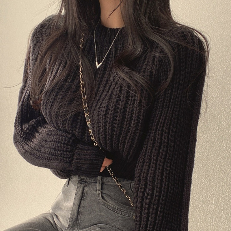 Women’s Pullover Sweater - Knit Blend - Oversized Fit - Balloon Sleeves - Crew Neck