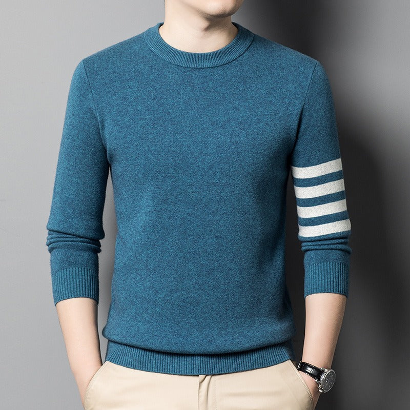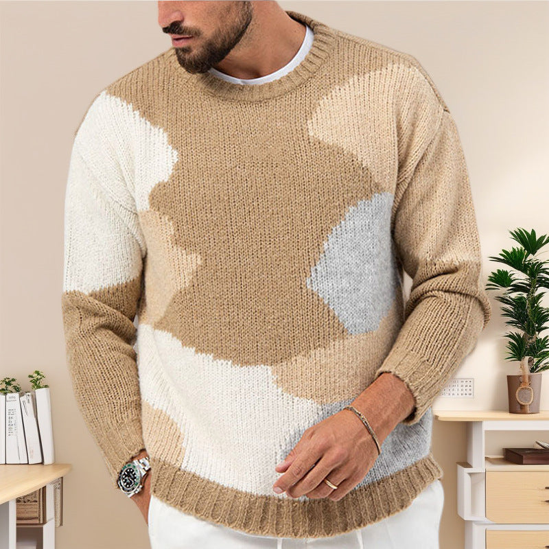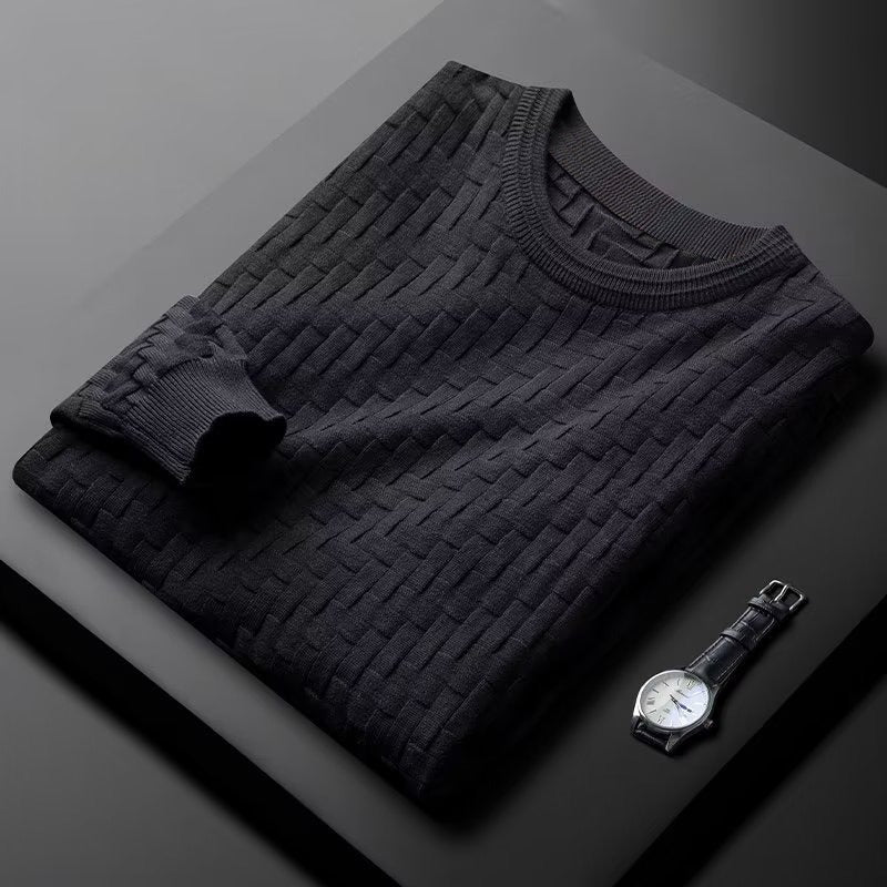 Men’s Sweater - Knit Fabric - Crew Neck - Long Sleeves - Textured Geometric Pattern