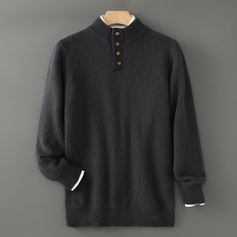 Men’s Sweater - Fine Knit - Regular Fit - Mock Neck - Button Placket