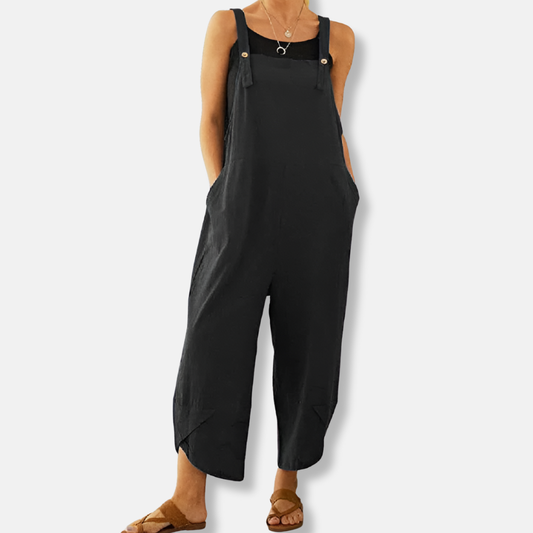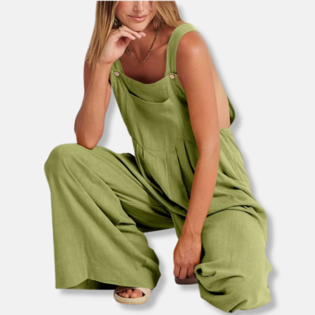 Women's Loose Cotton Linen Wide-Leg Jumpsuit