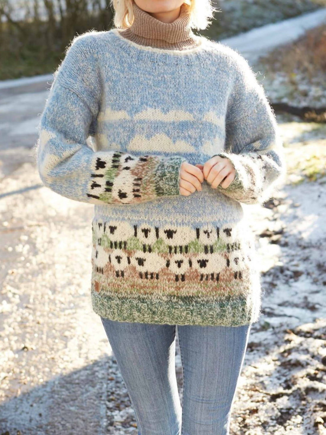Women’s Knitted Sweater – Relaxed Fit – Wool Blend – Long Sleeve Animal Print