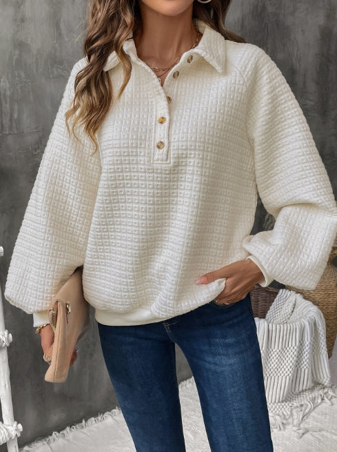 Women’s Sweatshirt – Oversized Fit – Textured Grid Knit – Half Placket – Casual Style