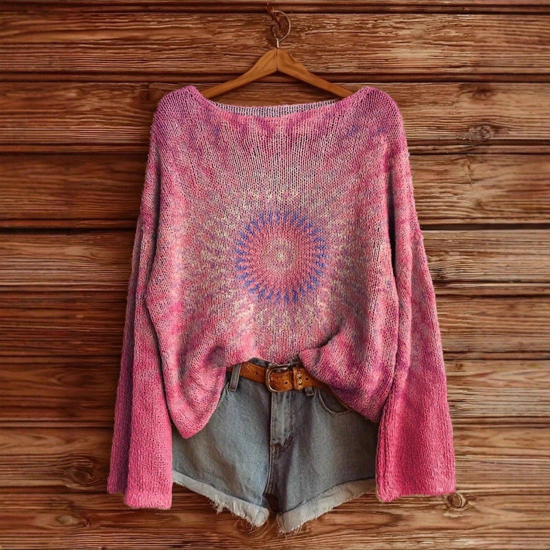 Women’s Sweater – Relaxed Fit – Soft Knit – Crew Neck – Star Print – Long Sleeve