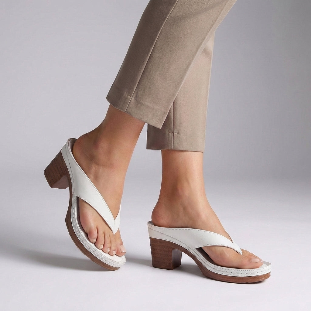 Crafted from supple, premium leather, these sandals promise luxurious comfort with every step. The secure thong strap ensures a perfect fit, while the substantial block heel and platform sole provide a confident lift without compromising stability. The distinctive wood-effect finish on the sole and heel adds an organic, chic touch. Pair them with a flowing maxi dress for an elegant daytime look or tailored linen trousers for an elevated evening ensemble.
