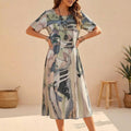 Crafted from a soft, breathable fabric, this dress features a relaxed fit, gentle scoop neckline, and comfortable short sleeves, ensuring absolute comfort even on the warmest days. The elegant midi length offers versatile styling, while the artistic print adds a touch of bohemian sophistication. Pair it with flat sandals and a straw tote for a casual daytime ensemble, or elevate it with espadrille wedges and delicate jewelry for an evening affair.
