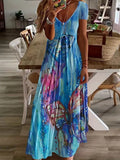 Embrace effortless style with the Women's Maxi Dress - Flowing A-Line Fit - Short Sleeve Scoop Neck - Butterfly Print Casual Wear by Couture-Emporium. This casual maxi dress boasts a flattering A-line silhouette, short sleeves, and a charming butterfly print. Perfect for everyday wear, it combines comfort and style.