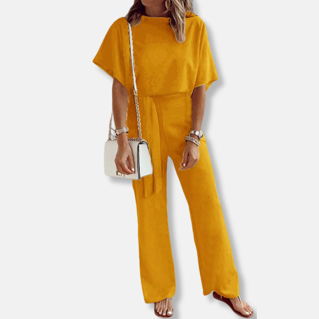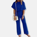 Introducing Carmel, an elegant short-sleeved jumpsuit with a hollowed waist design that combines modern style with sophistication. This chic piece is perfect for various occasions, offering a flattering silhouette and refined details that elevate your look.