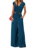 Get ready to make a statement with this fashionable Women's V-Neck Lace-Up Top and High Waist Wide Leg Pants Set. Perfect for any occasion, this elegant ensemble offers a unique combination of comfort and style, ensuring you look and feel your best all day long.