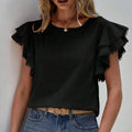 - Design: Ruffle Sleeve, Round Neck