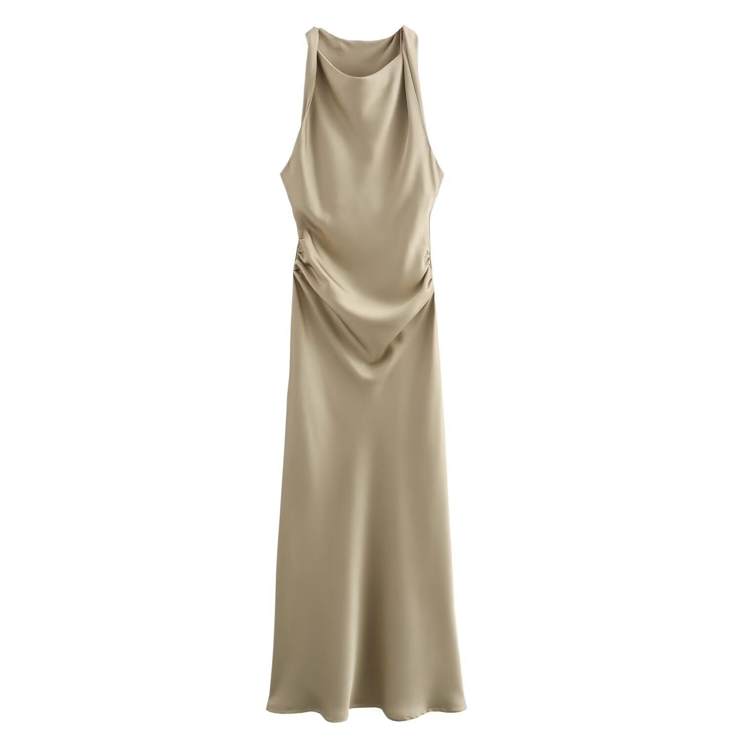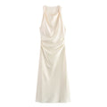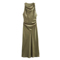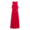 Transform your wardrobe with this sophisticated satin textured dress perfect for evening occasions. With a distinctive round neck and sleeveless design, this dress offers an exquisite blend of elegance and comfort. Its flowing silhouette ensures you stand out with effortless grace.