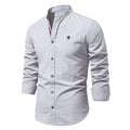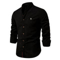 Crafted from breathable linen, this men's regular fit band collar shirt offers a sophisticated yet relaxed aesthetic. Featuring a button front and contrast trim, its long sleeves and hip-length cut make it an ideal choice for casual wear.
