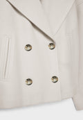 Embrace a refined casual aesthetic with this oversized peacoat for women. Designed with a classic collared neckline and long sleeves, it features a distinguished double-breasted button closure. Its cropped length and solid pattern offer a versatile foundation for your everyday wardrobe.