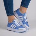 These Harper platform sneakers make a statement with bold stripes and a comfortable cotton build. Designed for casual outings, their standard fit and lace-up detail ensure all-day wearability without compromising on style.