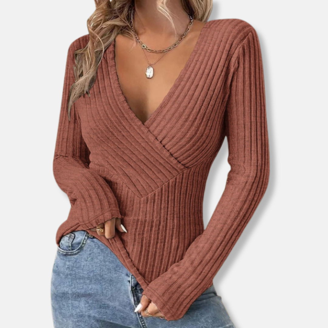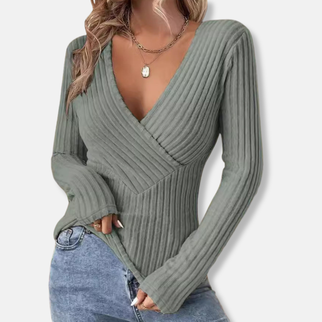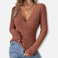 Elevate your style with the Women's Ribbed Knit Top - Deep V-Neck - Fitted Wrap Design - Long Sleeve by Couture-Emporium. This chic, long-sleeve knit top features a flattering deep V-neck and a fitted wrap design, perfect for creating a sophisticated silhouette. The ribbed texture adds visual appeal and ensures a comfortable, flexible fit ideal for effortless everyday wear.