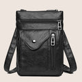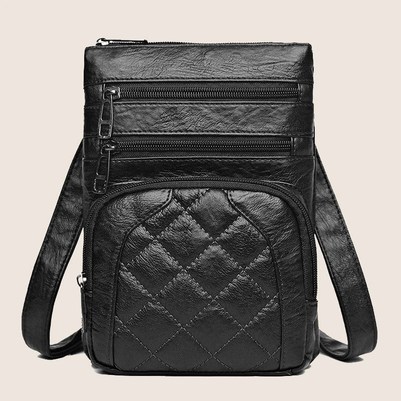 This structured crossbody bag, crafted from fine leather, offers both elegance and practicality for your everyday needs. Designed with convenience in mind, it features multiple zippered pockets and a secure flap pocket to keep your essentials organized. A snap closure ensures your belongings are safe, while the adjustable strap provides comfortable wear throughout the day.