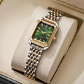 Adorn your wrist with a timepiece designed for everyday elegance. This distinctive watch features a sleek rectangle case, offering a refined silhouette that complements any attire. Its sophisticated two-tone strap and precise quartz movement ensure both impeccable style and reliable timekeeping for your daily engagements.