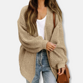 Embrace relaxed elegance with this oversized cardigan, designed for women seeking comfortable style. It features a flattering V-neck and distinctive lantern sleeves, extending to a thigh-length silhouette. The open front design and knit texture make it an ideal choice for casual wear.