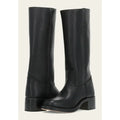 - Design: A Straight Shaft silhouette with a Stacked Block Heel detail.