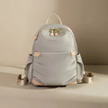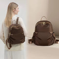 A solid backpack designed for everyday use, featuring practical zippered compartments and convenient side pockets. Its adjustable straps ensure a comfortable fit, complemented by elegant gold-tone hardware. This versatile piece is perfect for women seeking both style and functionality.
