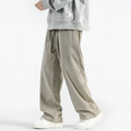Embrace comfort and style with these relaxed fit pants, designed for your casual moments. Featuring a practical drawstring waist, they offer an adjustable and secure fit for all-day wear. The ribbed texture adds a subtle touch of modern detail, making these full-length pants a versatile addition to your wardrobe.