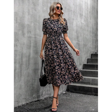 Effortlessly chic! Discover the Women's Maxi Dress - Floral Print A-Line - Puff Sleeve Smocked Waist - Round Neck by Couture-Emporium. This dress features a flattering A-line silhouette, romantic puff sleeves, and a comfortable smocked waist. Perfect for any occasion!