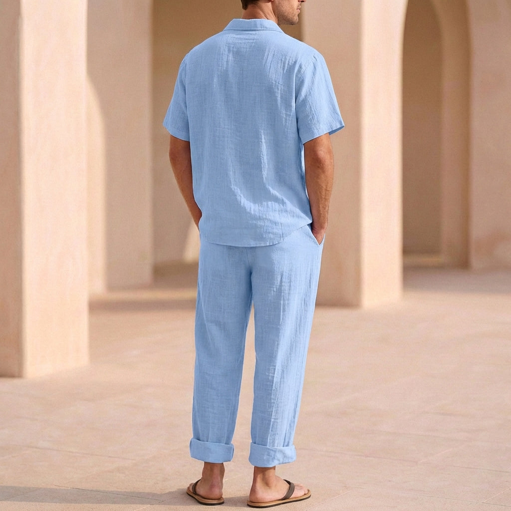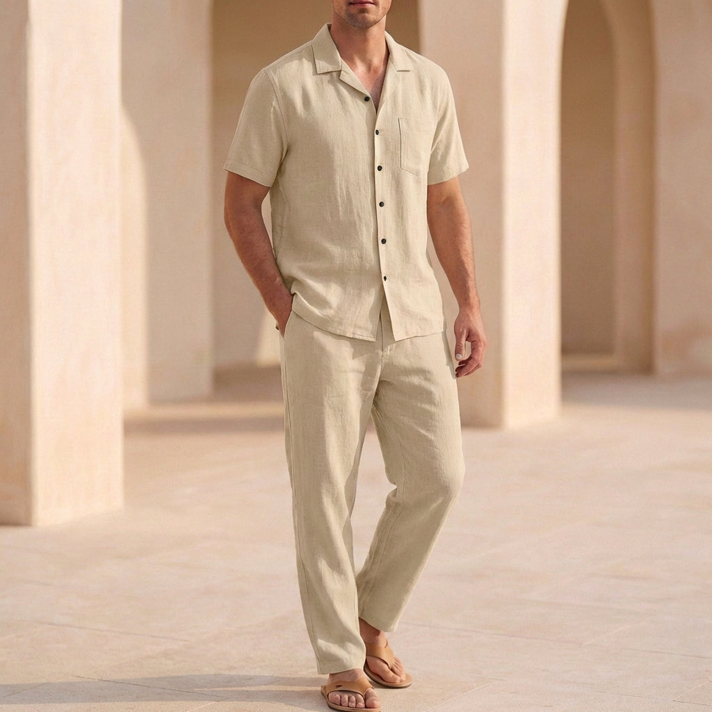 Embrace the sun-drenched days and balmy evenings with this exquisitely curated two-piece set, designed for the discerning individual seeking both comfort and refined style. Perfect for leisurely strolls along the coast or an al fresco brunch, it embodies an air of relaxed luxury, ensuring you feel effortlessly chic wherever your summer adventures take you.