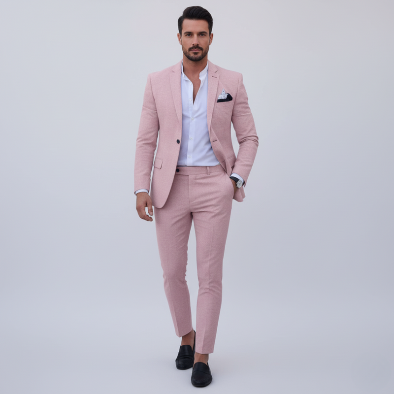 Step up your style game with the Maverick Two-Piece Cotton Set. Designed for the modern man, this sleek set combines a tailored blazer and matching trousers, crafted from breathable cotton for all-day comfort. Its slim, structured fit delivers a polished look that’s perfect for weddings, parties, or upscale casual outings. Pair it with a crisp shirt for a refined finish or dress it down with a tee for effortless versatility.