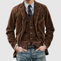 Elevate your style with Couture-Emporium's Two-Piece Corduroy Textured Relaxed Fit Blazer and Vest Set. This single-breasted ensemble features a tailored vest and a comfortable, relaxed fit blazer with a soft, ribbed corduroy texture. Perfect for business casual or semi-formal occasions, this set offers a versatile and polished look.