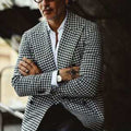 Elevate your formal wardrobe with Couture-Emporium's Slim Fit Wool Blend Check Blazer. This double-breasted blazer features a stylish check pattern and notched lapels. Perfect for business meetings or special occasions, this slim fit blazer offers a tailored and sophisticated look, making it a must-have addition to your collection: Men’s Blazer – Slim Fit – Wool Blend – Double-Breasted Check – Notched Lapel Formal Wear.