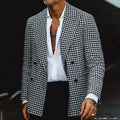 - Design: Double-Breasted Check Pattern with Notched Lapel
