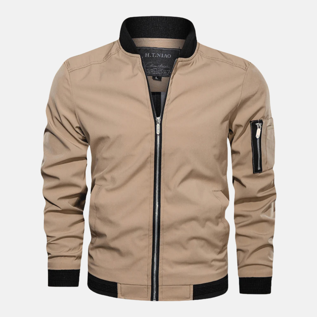 Stay stylish and protected with the Water-Resistant Regular Fit Bomber Jacket by Couture-Emporium. This classic outerwear piece features a ribbed collar, practical zipper pocket, and a comfortable regular fit. Ideal for everyday wear offering both style and functionality.