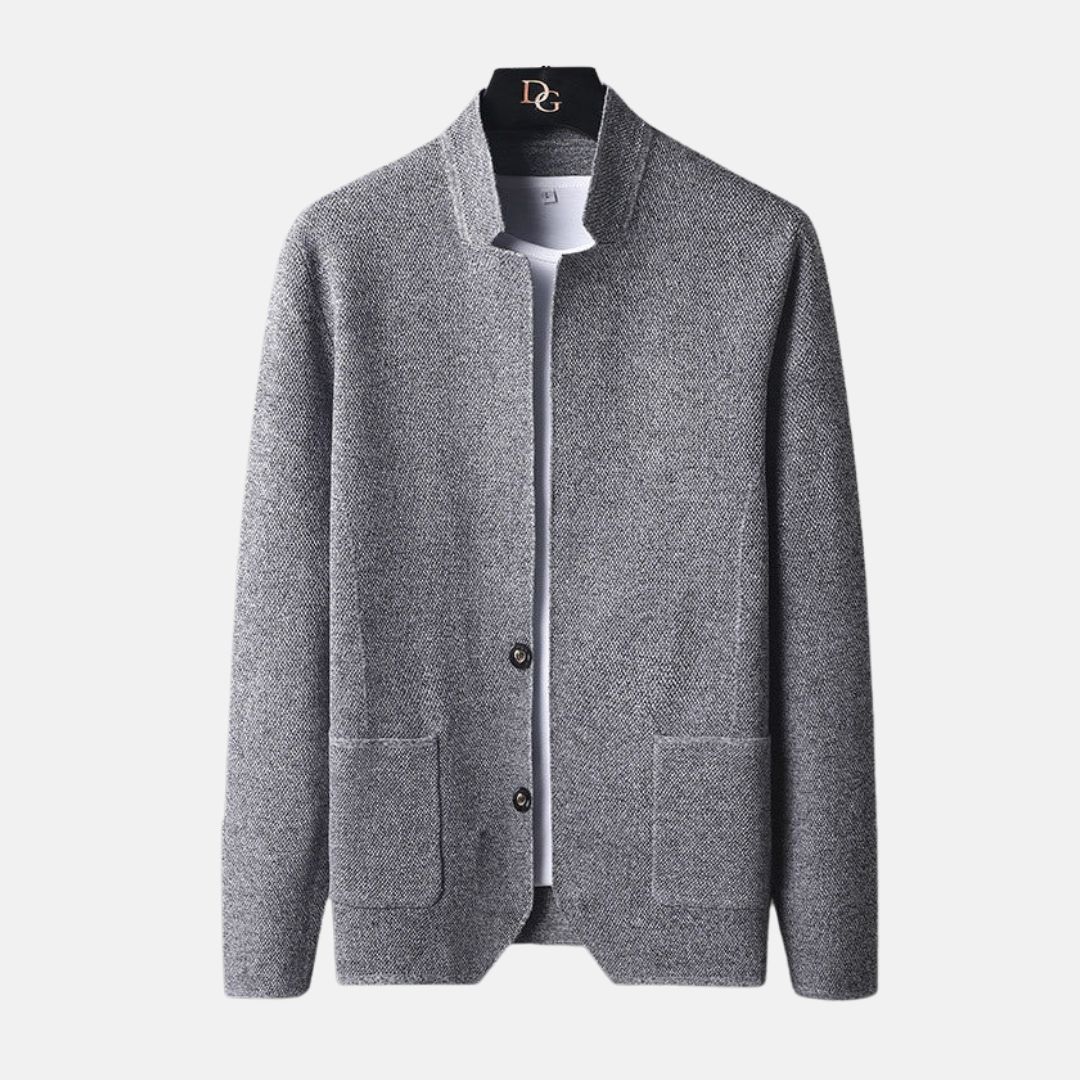 Elevate your wardrobe with our Men’s Cardigan, a testament to refined style. Crafted from a fine-gauge knit, this band collar, button-front design offers a flattering straight silhouette and versatile appeal, complete with practical patch pockets for a touch of understated elegance.