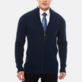 Elevate his wardrobe with our Men’s Cardigan Sweater. Crafted from a refined ribbed knit, this full-zip design with a distinguished stand collar offers a flattering silhouette and versatile styling for the discerning gentleman.