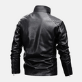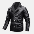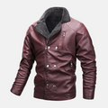 Shearling Lined Structured Fit Leather Jacket. Elevate your style with this men’s faux leather jacket, featuring a structured fit, cozy faux shearling lining, and stylish quilted shoulders. This jacket offers a sleek look with versatile closure, perfect for adding a touch of rugged sophistication to any outfit.