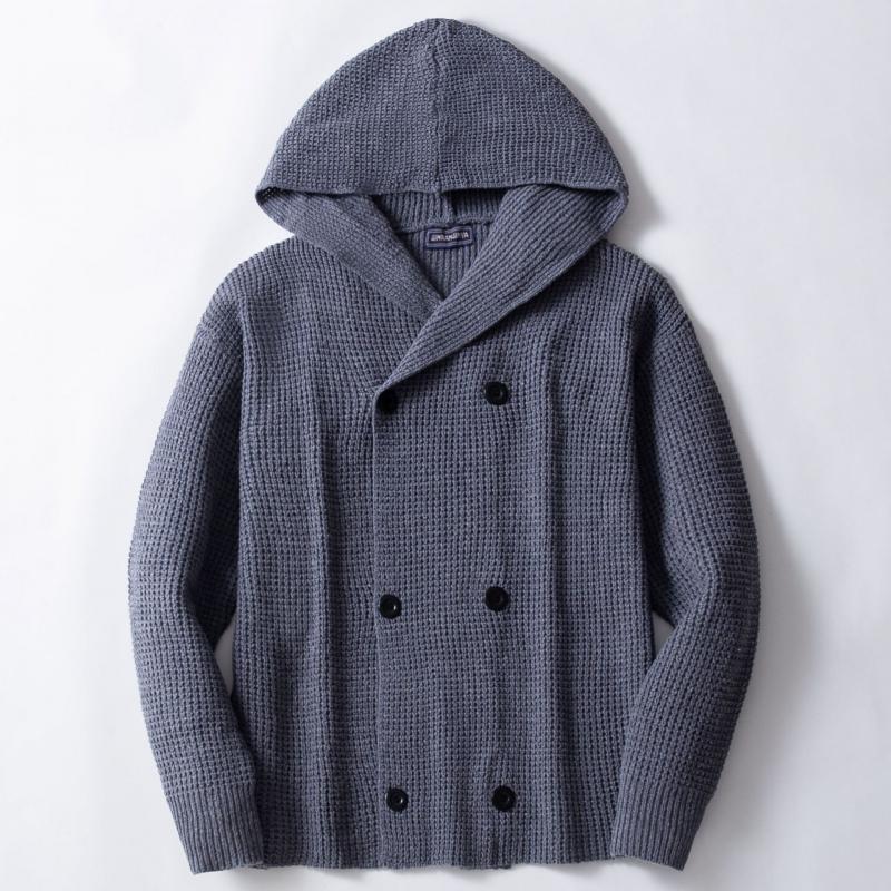This stylish cardigan features a double-breasted closure and a cozy hooded design. The ribbed knit texture adds a touch of sophistication, while the comfortable fit makes it perfect for both casual and semi-formal occasions. Pair it with jeans and a tee for a laid-back look, or dress it up with chinos and a blazer for a more polished appearance.