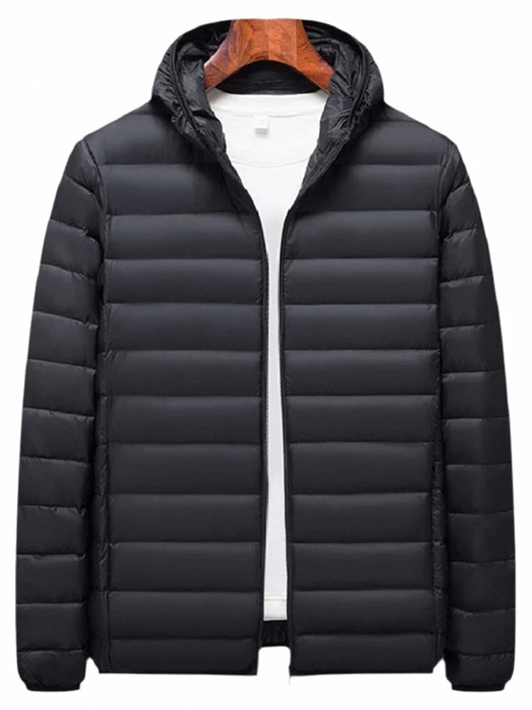 Sleek Protection: Men's Hooded Puffer Jacket with Zipper!