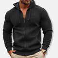 Elevate his casual wardrobe with our Men’s Hooded Sweatshirt. Crafted from a refined cotton blend with a textured grid pattern, this hip-length, full-zip design with a drawstring hood offers a flattering silhouette and versatile styling for effortless sophistication.