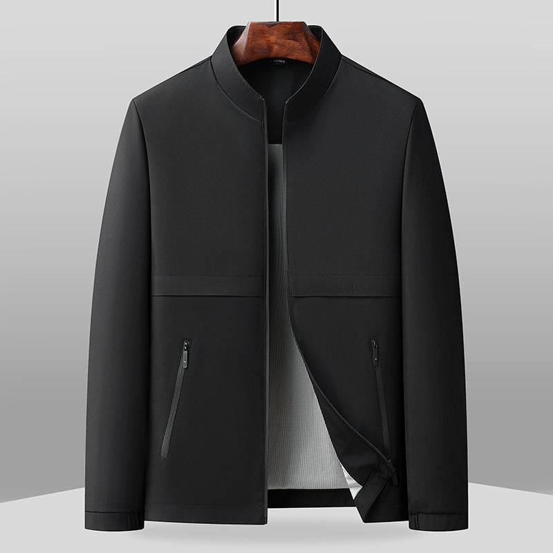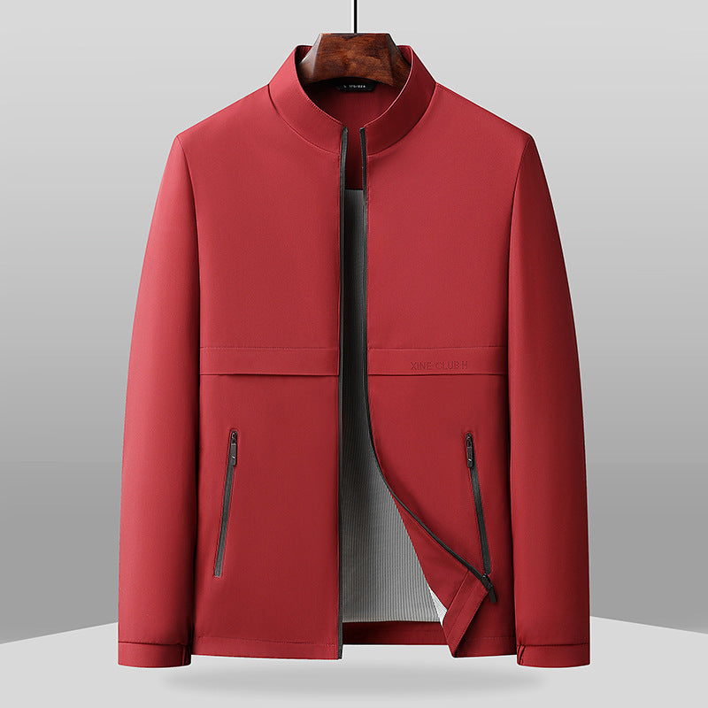 The Regular Fit Band Collar Full-Zip Jacket from Couture-Emporium is your new go-to for streamlined style. This hip-length jacket features a modern band collar, full-zip closure, and practical zipper pockets. Perfect for everyday wear, adding a touch of effortless cool to any outfit.