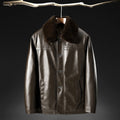 Plush Fur Collar Tailored Leather Jacket. Elevate your style with this men’s tailored fit, waist-length jacket. Features a plush fur collar and button-front closure. Perfect for a sophisticated, stylish look and ultimate warmth and comfort.